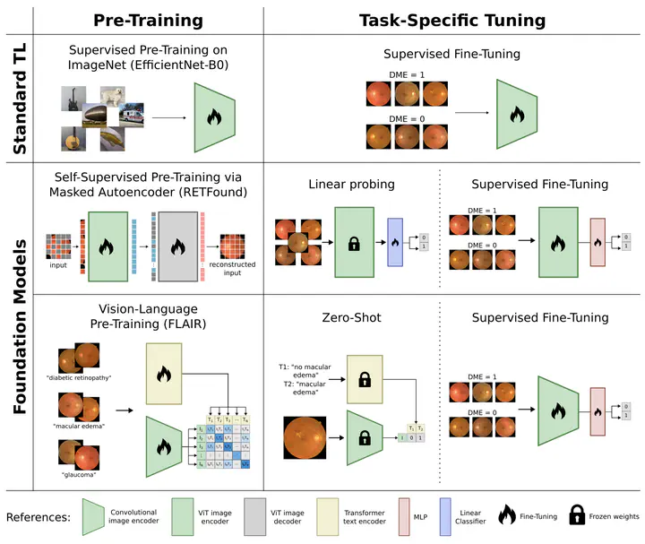 Diabetic Macular Edema (DME) is a leading cause of vision loss among patients with Diabetic Retinopathy (DR). While deep learning has shown promising results for automatically detecting this condition from fundus images, its application remains challenging due the limited availability of annotated data. Foundation Models (FM) have emerged as an alternative solution. However, it is unclear if they can cope with DME detection in particular. In this paper, we systematically compare different FM and standard transfer learning approaches for this task. Specifically, we compare the two most popular FM for retinal images–RETFound and FLAIR–and an EfficientNetB0 backbone, across different training regimes and evaluation settings in IDRiD, MESSIDOR-2 and OCT-and-Eye-FundusImages (OEFI). Results show that despite their scale, FM do not consistently outperform fine-tuned CNNs in this task. In particular, an EfficientNet-B0 ranked first or second in terms of area under the ROC and precision/recall curves in most evaluation settings, with RETFound only showing promising results in OEFI. FLAIR, on the other hand, demonstrated competitive zero-shot performance, achieving notable AUC-PR scores when prompted appropriately. These findings reveal that FM might not be a good tool for fine-grained ophthalmic tasks such as DME detection even after fine-tuning, suggesting that lightweight CNNs remain strong baselines in data-scarce environments.